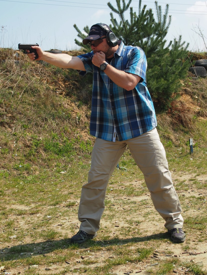 Zajímalo nás, jak se zbraň ovládá a chová v rozsahu vzdáleností 5-30 metrů při různých technikách – střelba obouruč, dominantní/nedominantní rukou, různé střelecké polohy a jejich kombinace a aplikace, dynamická střelba na různě velké cíle (kovové a papírové terče) , střelba zpoza krytu atd.